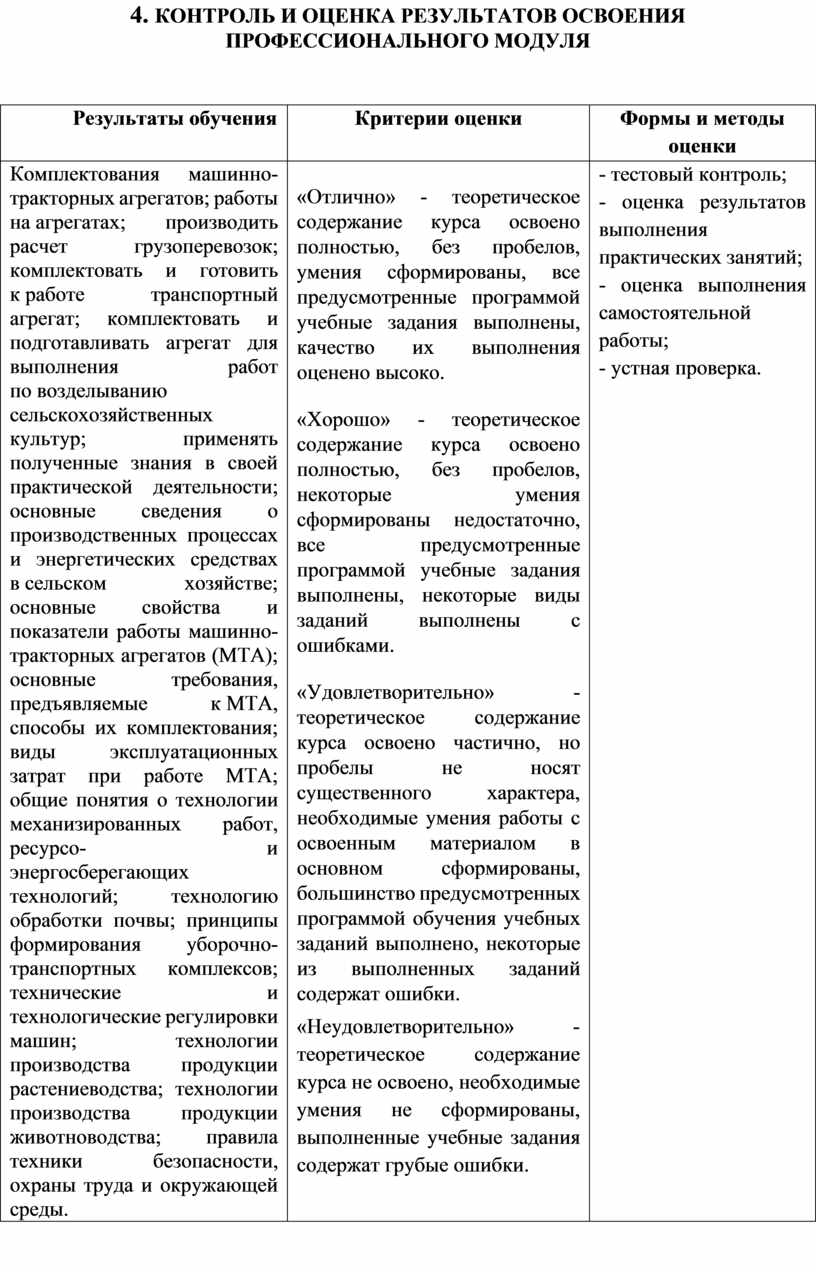 4. КОНТРОЛЬ И ОЦЕНКА РЕЗУЛЬТАТОВ ОСВОЕНИЯ ПРОФЕССИОНАЛЬНОГО МОДУЛЯ |
