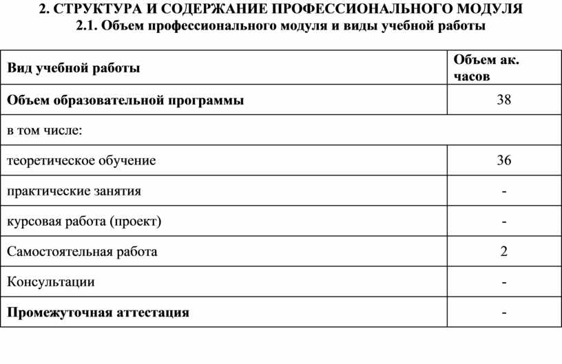 2. СТРУКТУРА И СОДЕРЖАНИЕ ПРОФЕССИОНАЛЬНОГО МОДУЛЯ