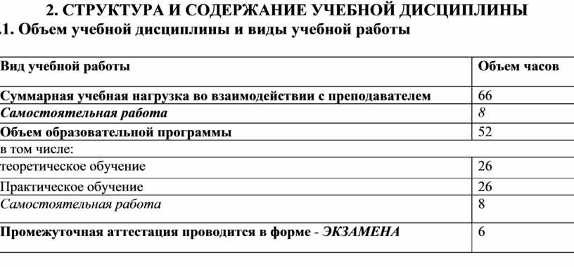 2. СТРУКТУРА И СОДЕРЖАНИЕ УЧЕБНОЙ ДИСЦИПЛИНЫ