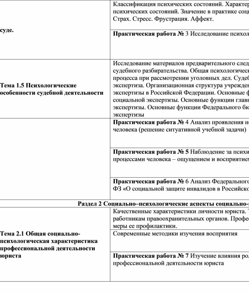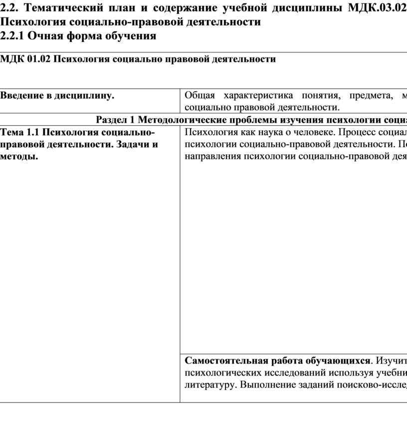 2.2. Тематический план и содержание учебной дисциплины МДК.03.02 Психология социально-правовой деятельности