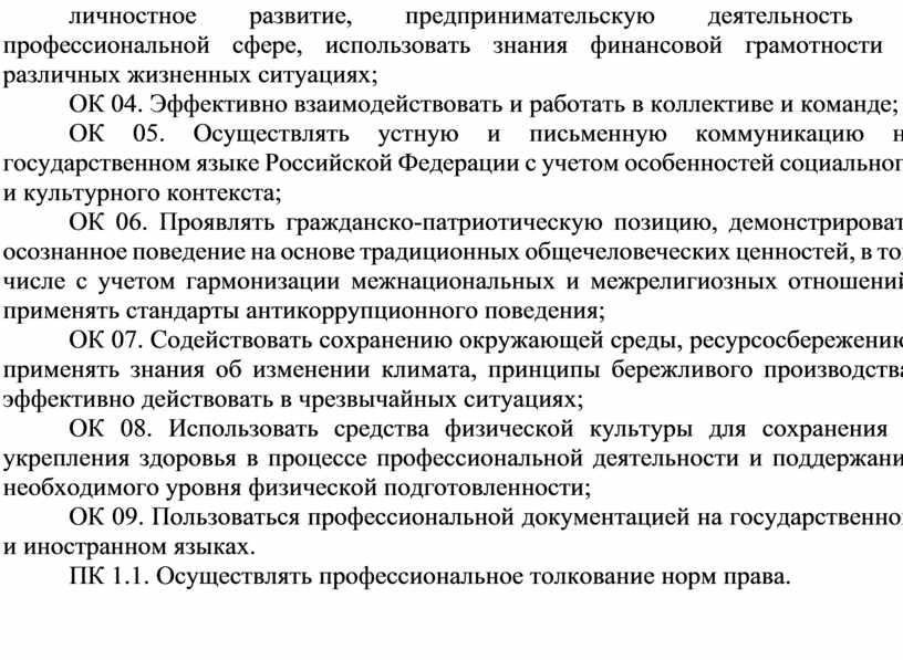 ПК 1.1. Осуществлять профессиональное толкование норм права.
