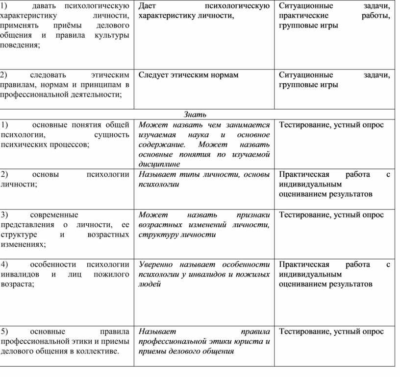 4) давать психологическую характеристику личности, применять приёмы делового общения и правила культуры поведения;
