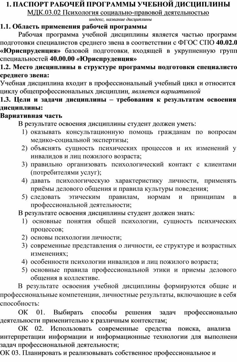 1. ПАСПОРТ РАБОЧЕЙ ПРОГРАММЫ УЧЕБНОЙ ДИСЦИПЛИНЫ