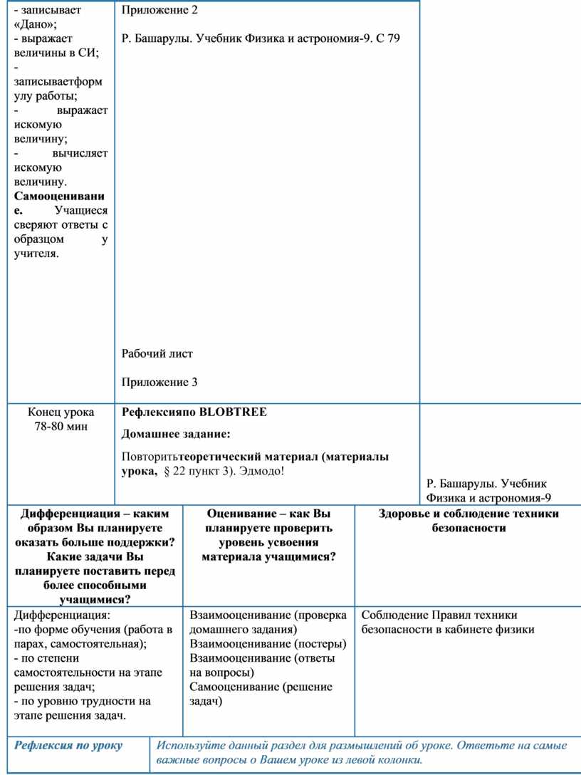 Были ли цели урока/цели обучения реалистичными? Все ли учащиеся достигли ЦО? Если нет, то почему? Правильно ли проведена дифференциация на уроке? Выдержаны ли были временные этапы урока? Какие отступления были от плана урока и почему? |