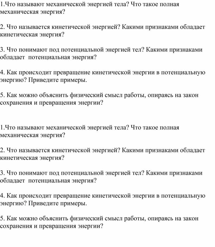 1.Что называют механической энергией тела? Что такое полная механическая энергия?