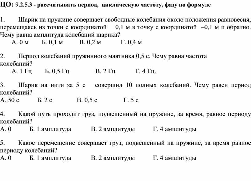 ЦО: 9.2.5.3 - рассчитывать период, циклическую частоту, фазу по формуле
