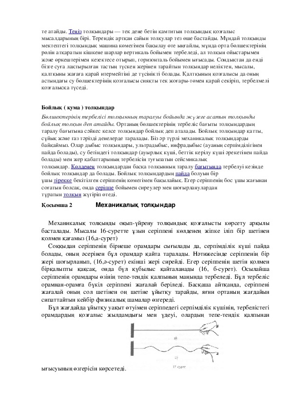 Механикалық толқындар туралы ұғым қалыптастыра отырып оның