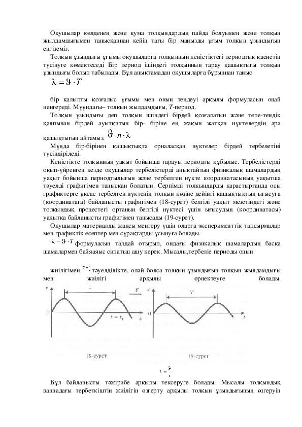 Толқын ұзындығы ұғымы оқушыларға толқынның кеңістіктегі периодтық қасиетін