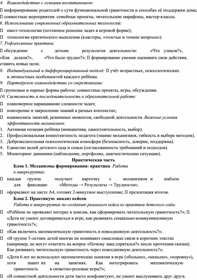 Механизмы формирования предпосылок функциональной грамотности – это система взаимосвязанных педагогических условий, методов, форм и средств, обеспечивающих постепенное становление у дошкольников базовых компетенций, необходимых для решения жизненных задач и успешной адаптации в социуме.