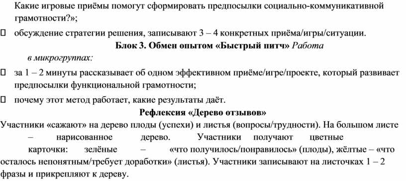 - за 1 – 2 минуты рассказывает об одном эффективном приёме/игре/проекте, который развивает предпосылки функциональной грамотности;