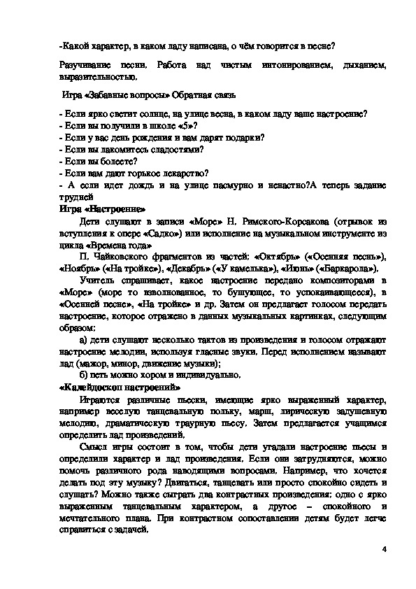 Смысл игры состоит в том, чтобы дети угадали настроение пьесы и