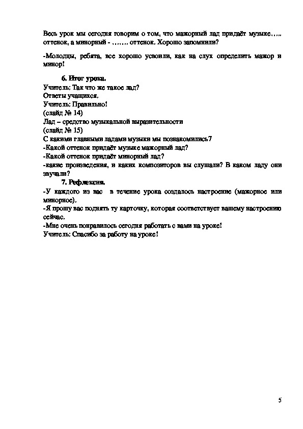 4Весь урок мы сегодня говорим о том, что мажорный лад придаёт музыке…..