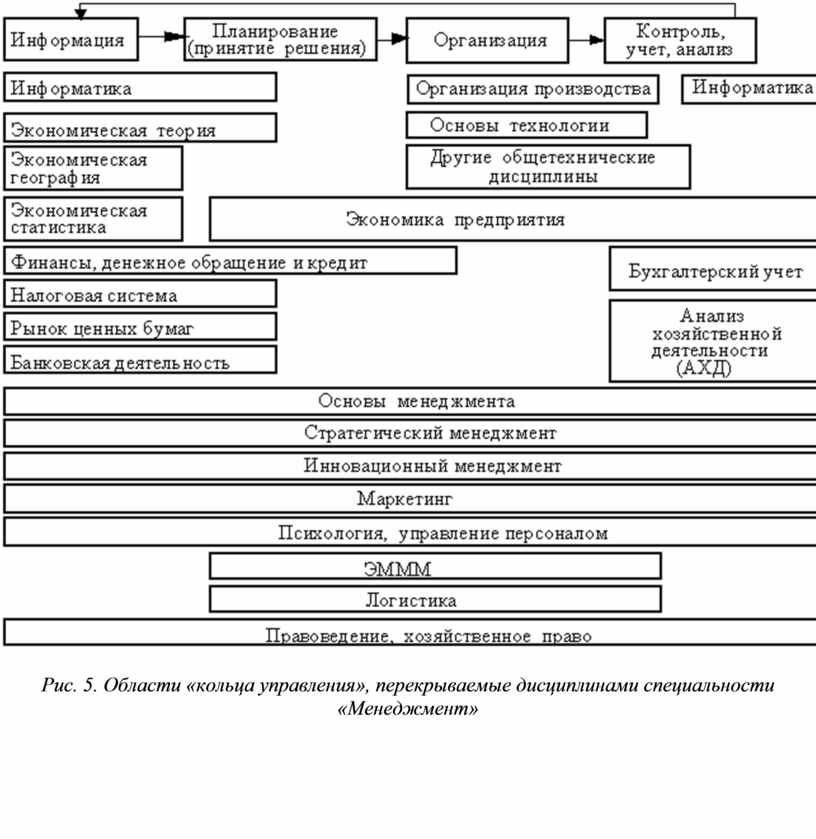 Рис. 5. Области «кольца управления», перекрываемые дисциплинами специальности «Менеджмент»