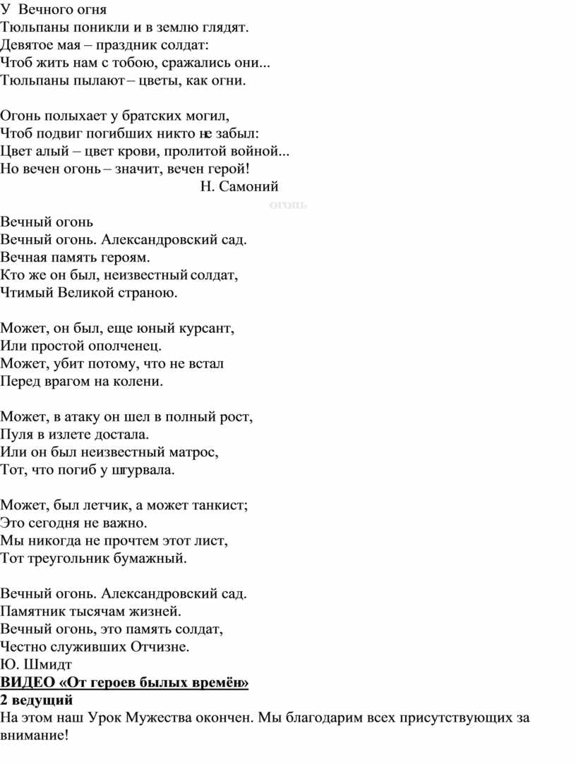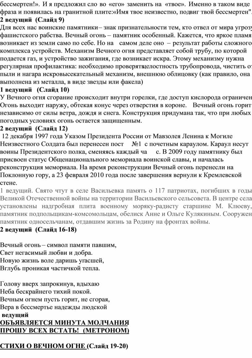 СТИХИ О ВЕЧНОМ ОГНЕ (Слайд 19-20)