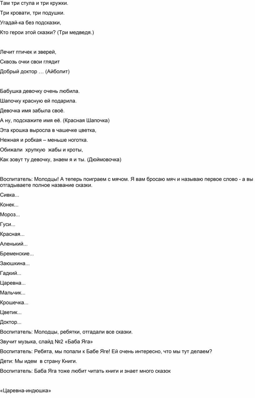 Воспитатель: Молодцы! А теперь поиграем с мячом. Я вам бросаю мяч и называю первое слово - а вы отгадываете полное название сказки.