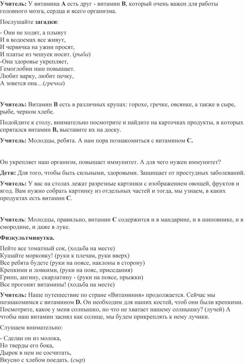 Учитель: Правильно. Сейчас я расскажу вам, что такое витамины и для чего они необходимы человеку.
