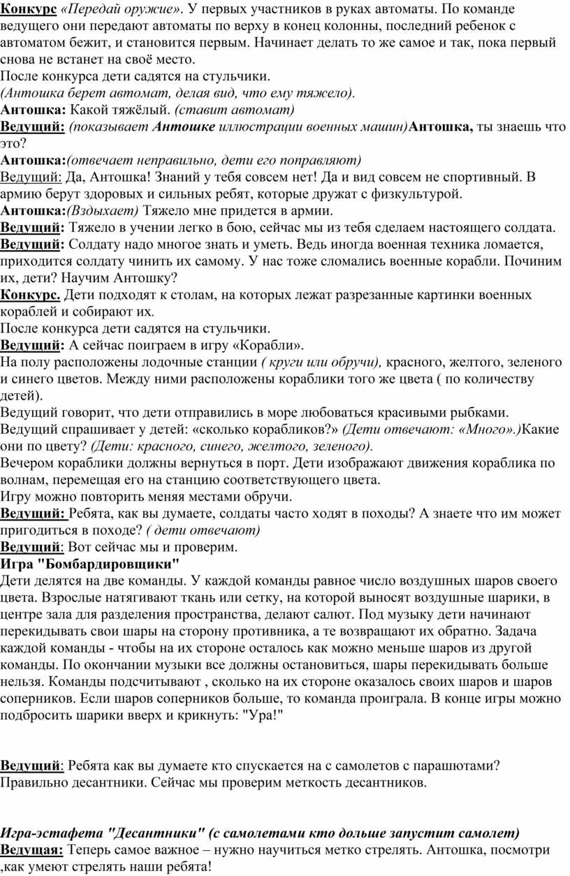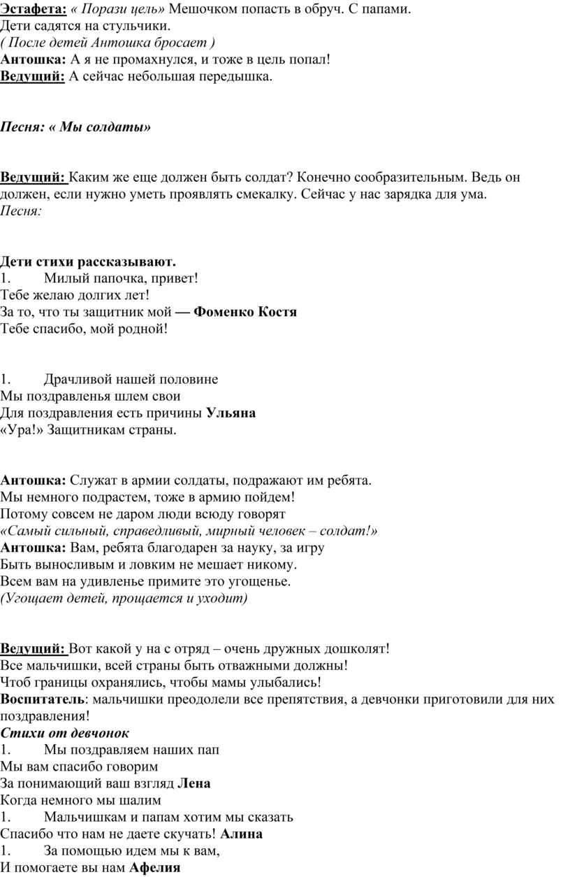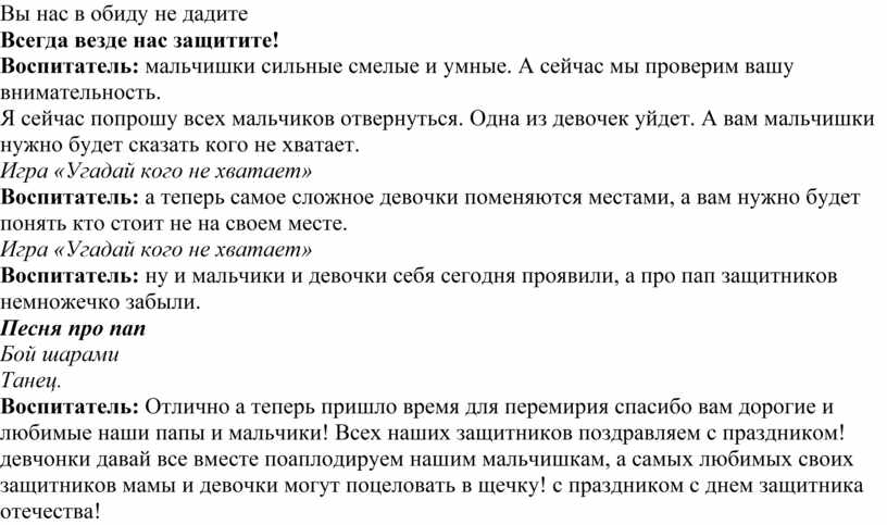 Сценарий утренника на 23 февраля в детском саду «День защитника отечества в разновозрастной группе.