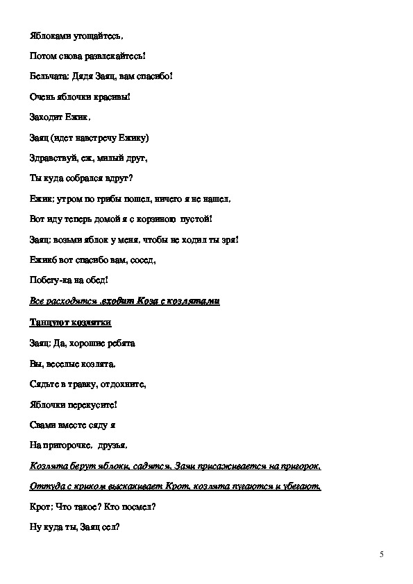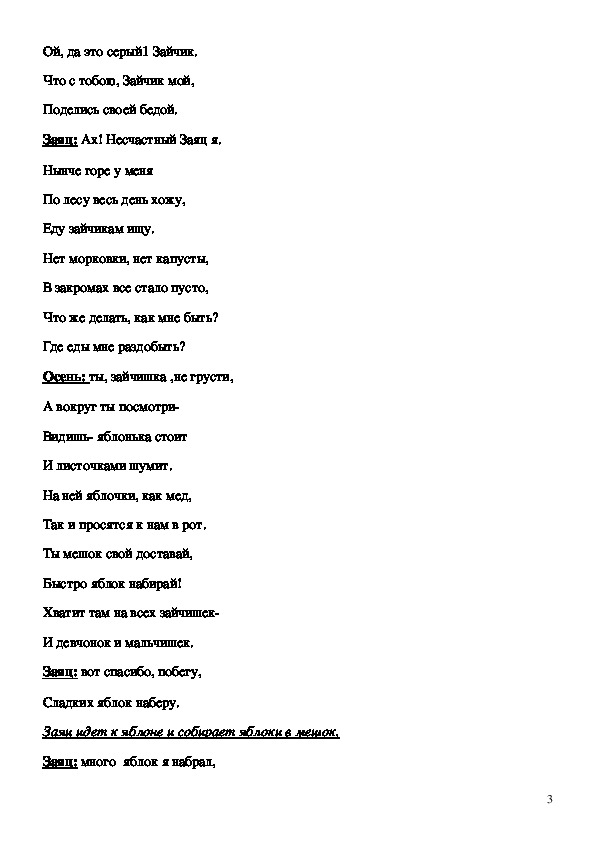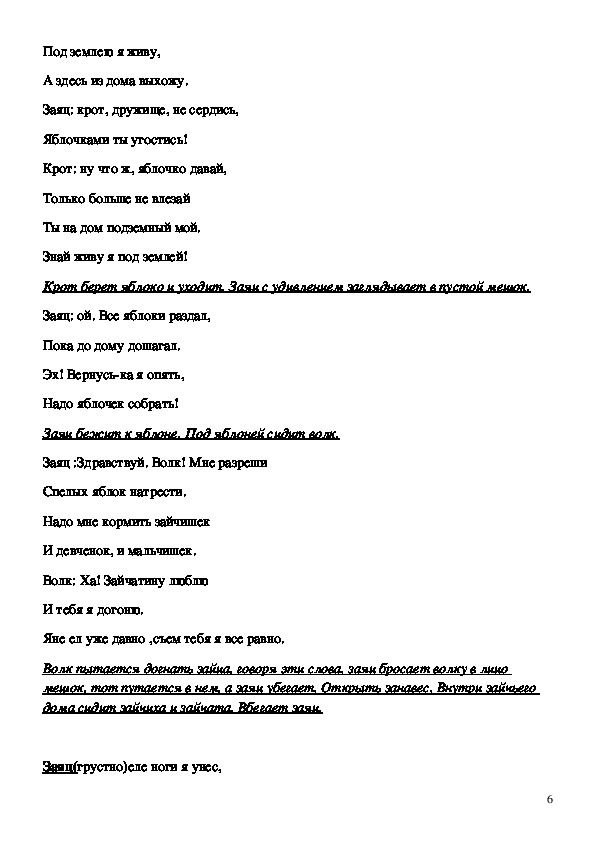мешок, тот путается в нем, а заяц убегает. Открыть занавес. Внутри зайчьего