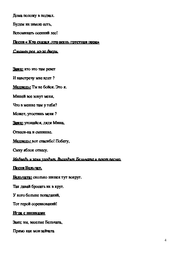 Медведь и заяц уходят. Выходят Бельчата и поют песню.