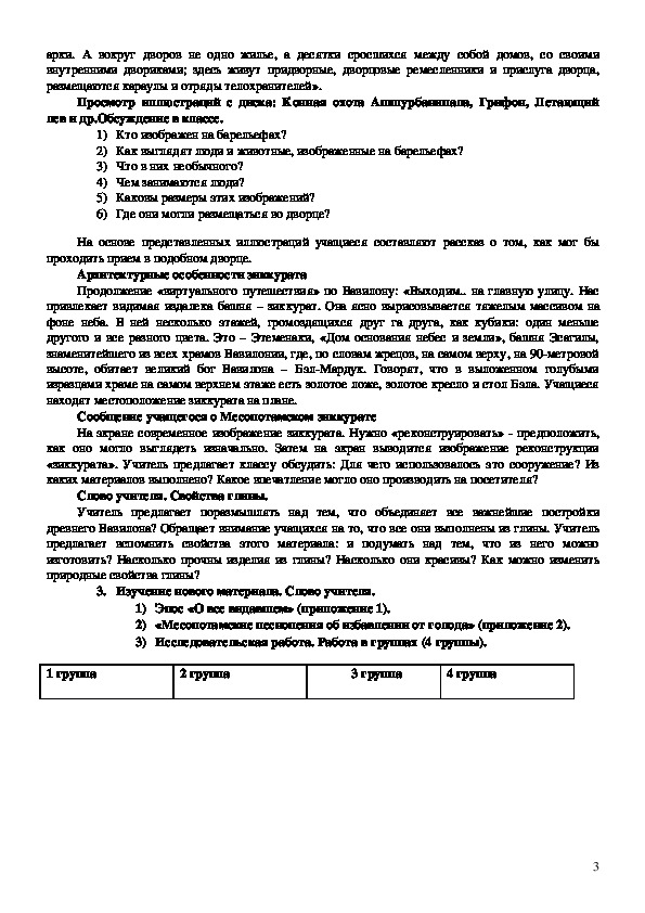 - выявить особенности языка этого вида искусства при раскрытии главной темы культуры Месопотамии.