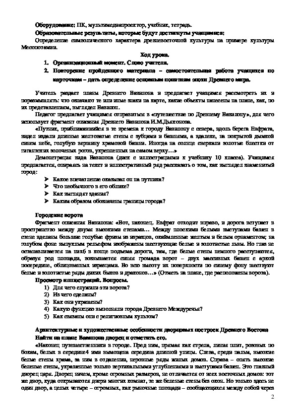 - определить, в чем и как проявляется символический характер искусства древневосточных цивилизаций на примере культуры Месопотамии.