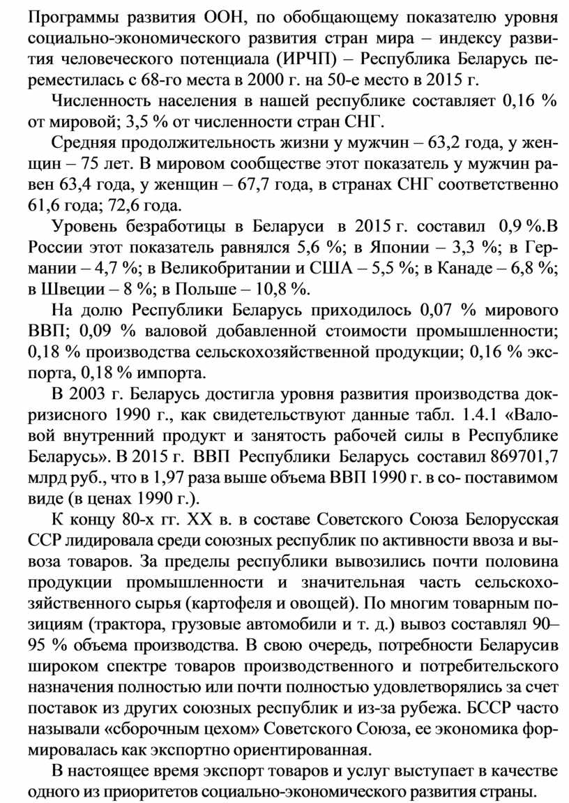 Программы развития ООН, по обобщающему показателю уровня социально-экономического развития стран мира – индексу разви- тия человеческого потенциала (ИРЧП) – Республика Беларусь пе- реместилась с 68-го места в 2000 г. на 50-е место в 2015 г.