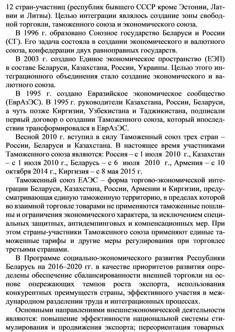 В 2003 г. создано Единое экономическое пространство (ЕЭП) в составе Беларуси, Казахстана, России, Украины. Целью этого ин- теграционного объединения стало создание экономического и ва- лютного союза.