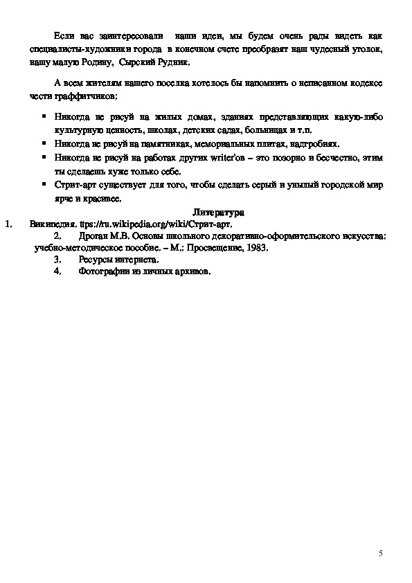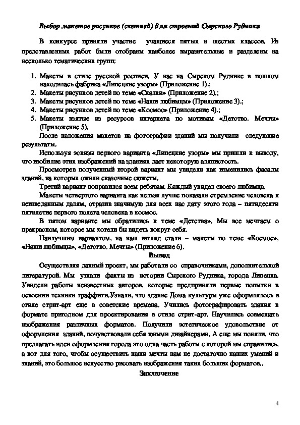 стен зданий и сооружений Сырского Рудника. В этом нам помог учитель ИЗО и в