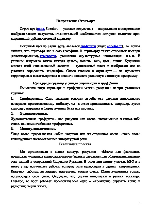 Нынешние виды стритарт и граффити можно разделить на три условных