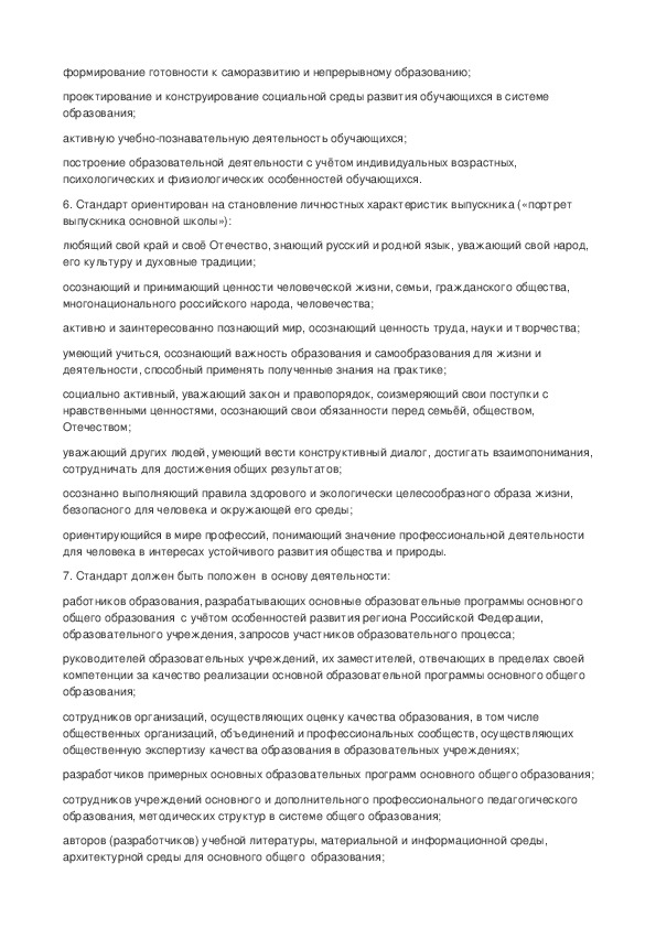 6. Стандарт ориентирован на становление личностных характеристик выпускника («портрет