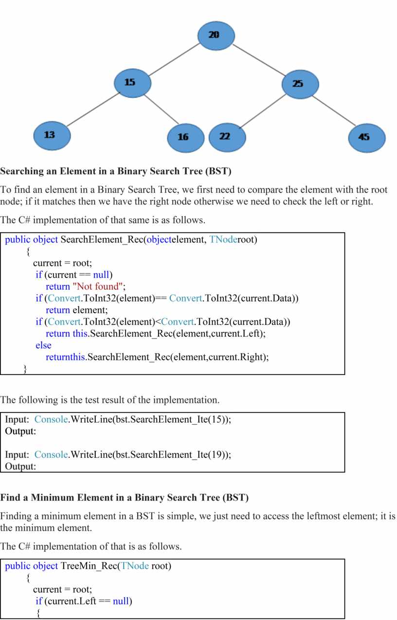Input: Console.WriteLine(bst.SearchElement_Ite(15)); Output: