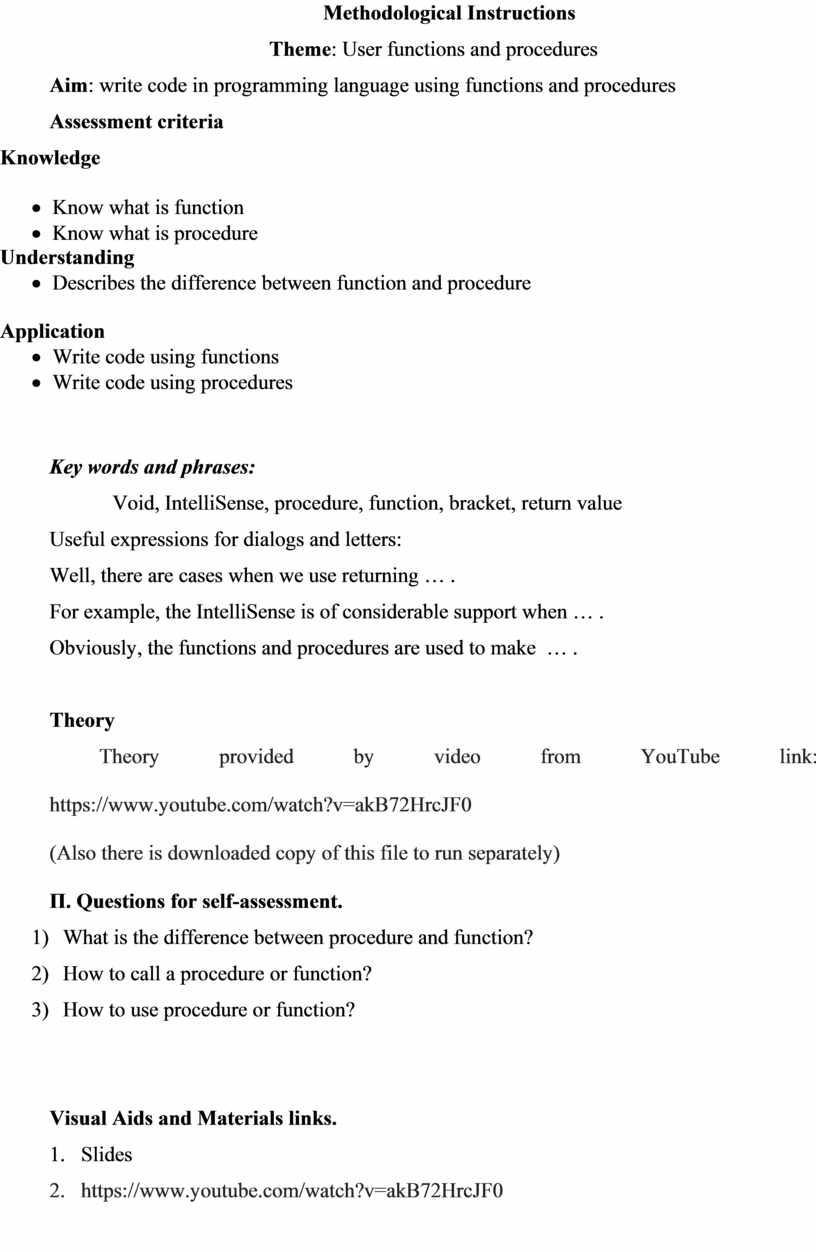 Aim: write code in programming language using functions and procedures