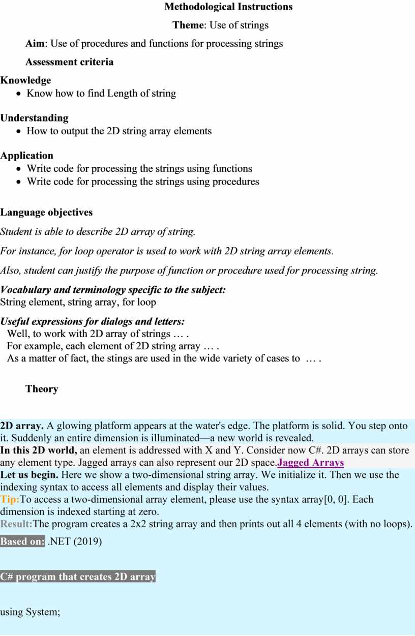 Also, student can justify the purpose of function or procedure used for processing string.