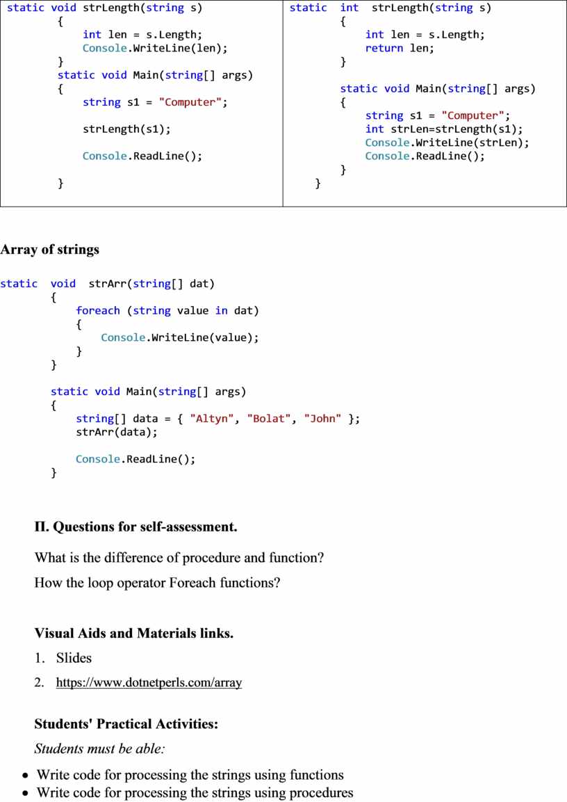 static void strLength(string s) { int len = s.Length; Console.WriteLine(len); } static void Main(string[] args) { string s1 = "Computer";