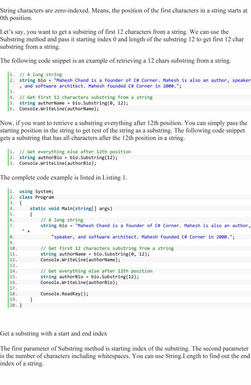 3. https://www.c-sharpcorner.com/UploadFile/mahesh/substring-in-C-Sharp/