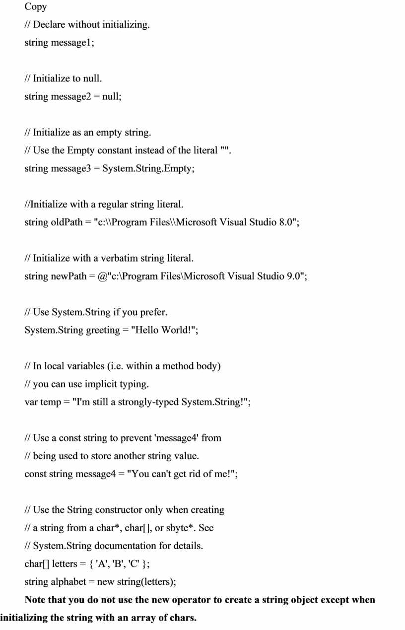 You can declare and initialize strings in various ways, as shown in the following example: