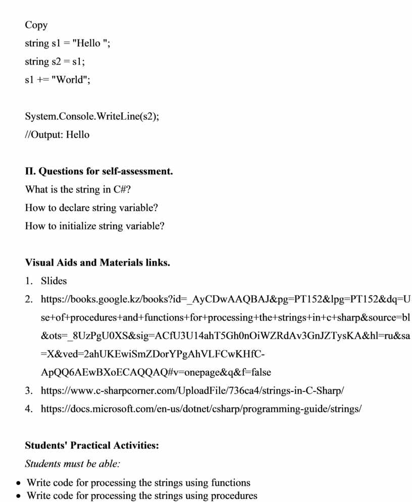 2. https://books.google.kz/books?id=_AyCDwAAQBAJ&pg=PT152&lpg=PT152&dq=Use+of+procedures+and+functions+for+processing+the+strings+in+c+sharp&source=bl&ots=_8UzPgU0XS&sig=ACfU3U14ahT5Gh0nOiWZRdAv3GnJZTysKA&hl=ru&sa=X&ved=2ahUKEwiSmZDorYPgAhVLFCwKHfC-ApQQ6AEwBXoECAQQAQ#v=onepage&q&f=false