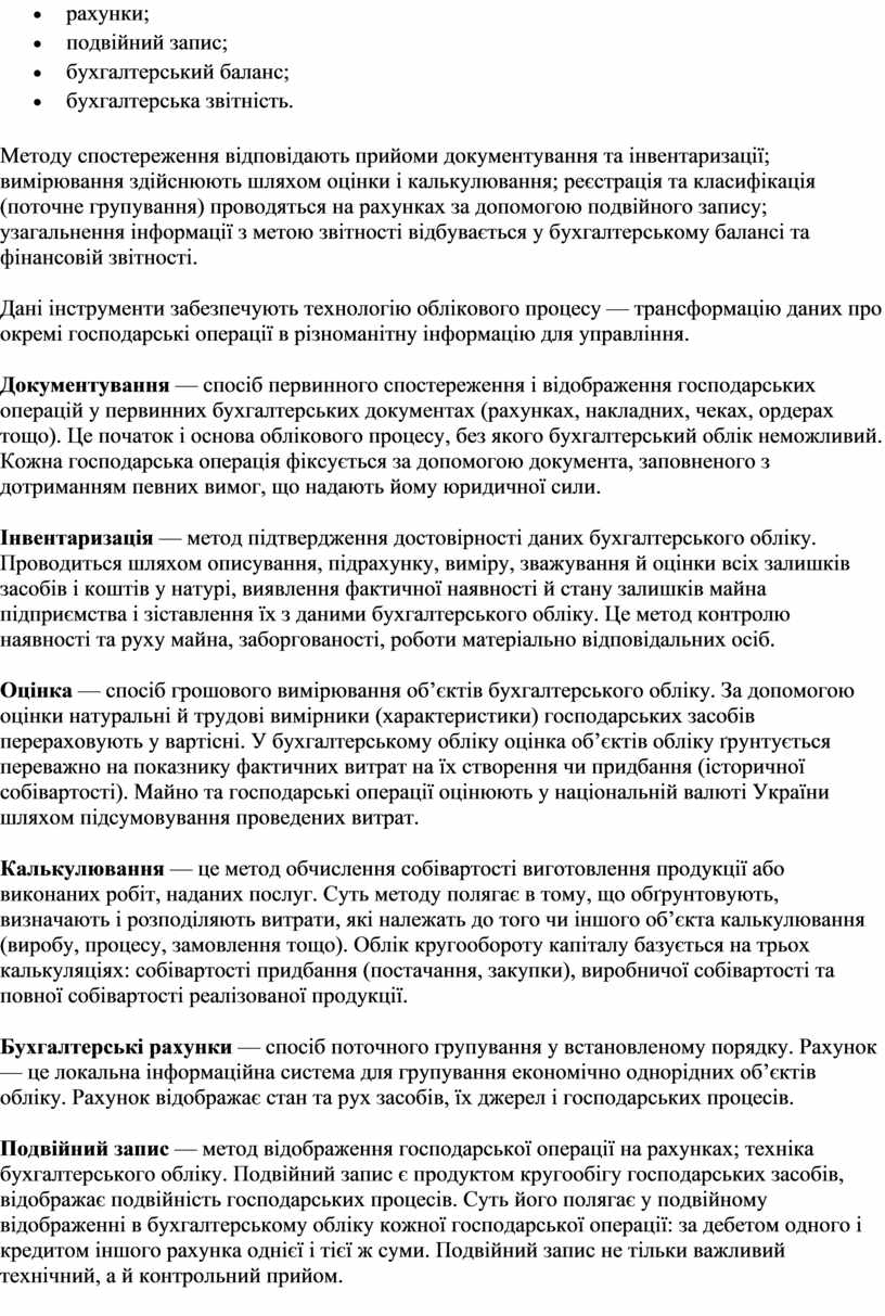 Поряд із загальнонауковими методами та теоретичною основою бухгалтерський облік є самостійною економічною прикладною наукою і має свої специфічні методи (прийоми), обумовлені сутністю самого предмета, технологією обліку, завданнями та вимогами.