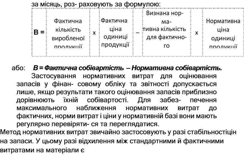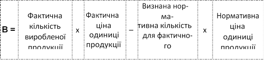 або: В = Фактична собівартість – Нормативна собівартість.