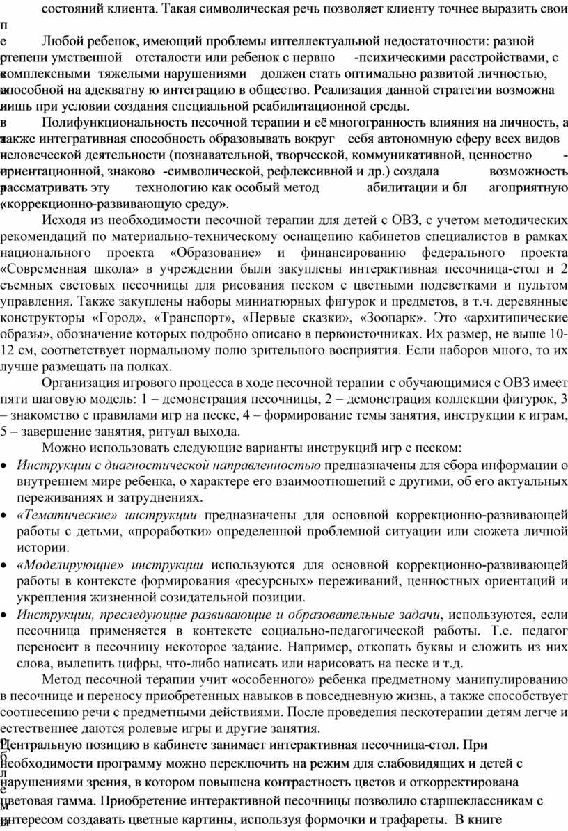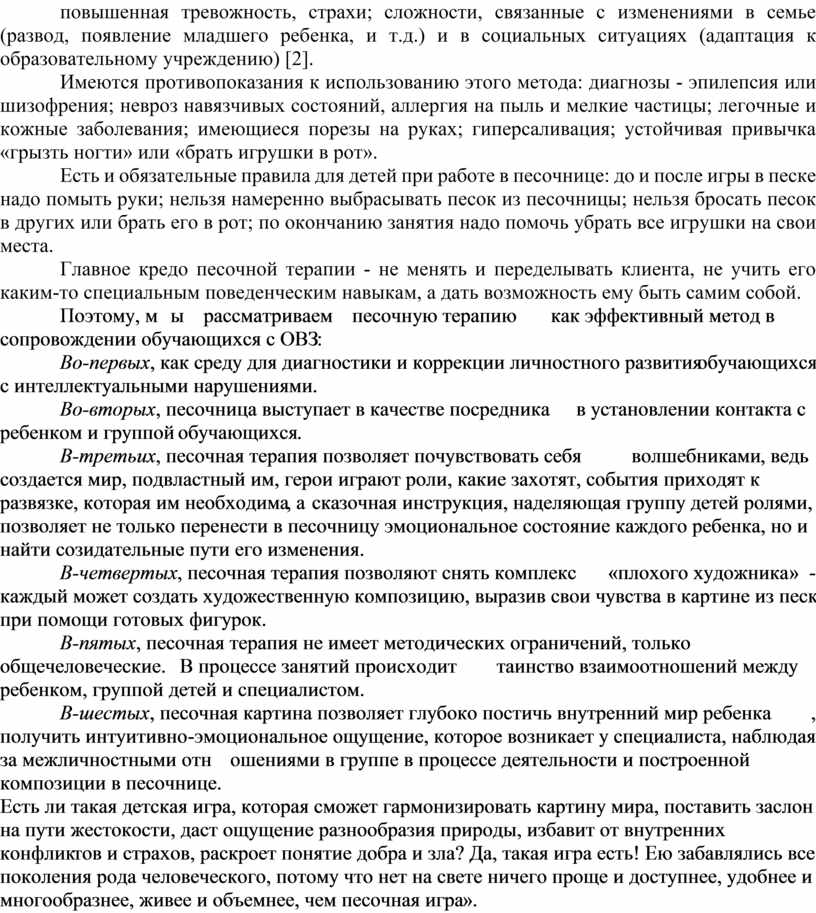 Поэтому, мы рассматриваем песочную терапию как эффективный метод в сопровождении обучающихся с ОВЗ: