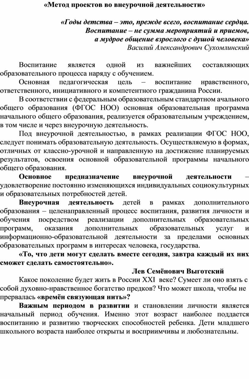 «Метод проектов во внеурочной деятельности»