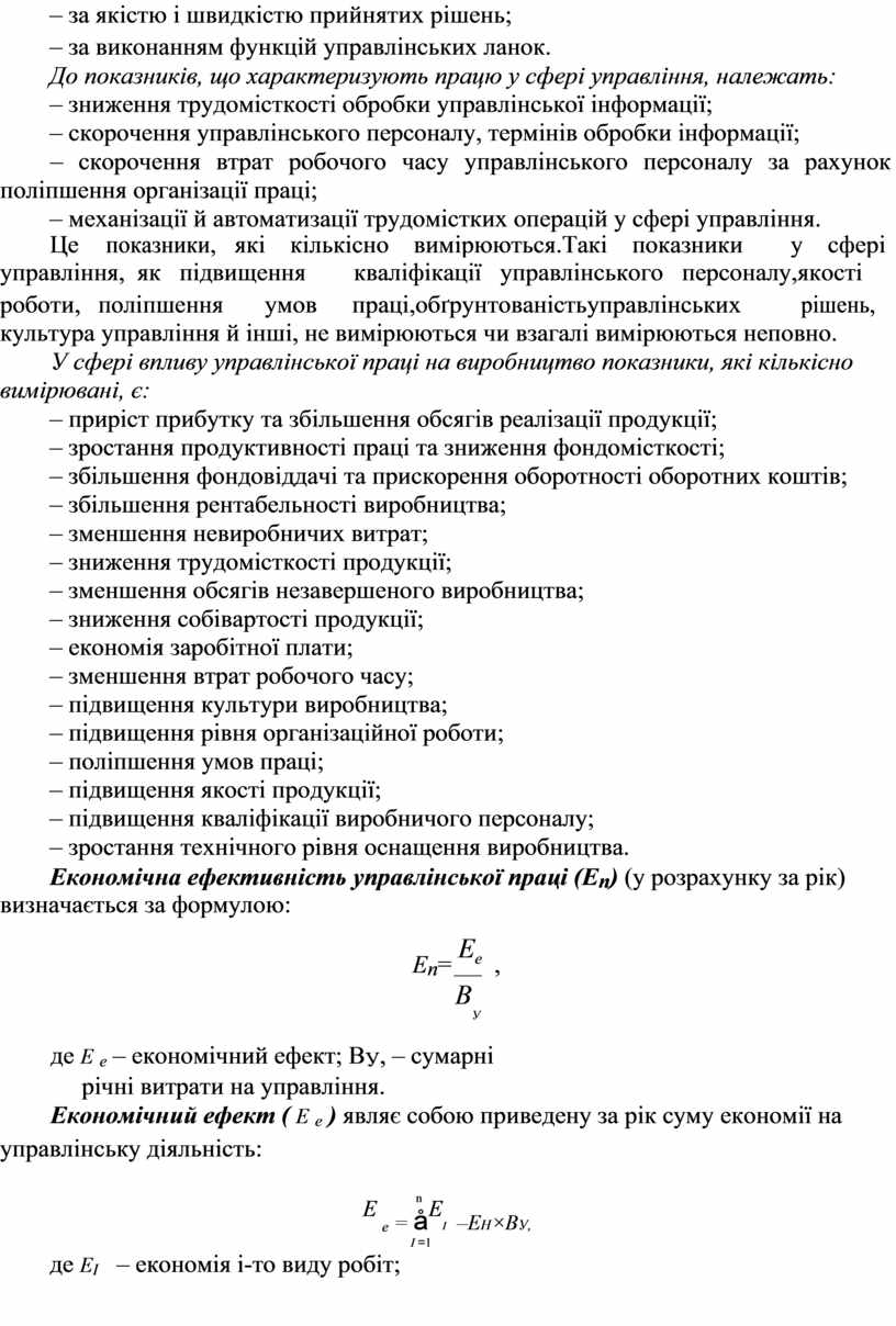 визначення економічної ефективності управлінської |