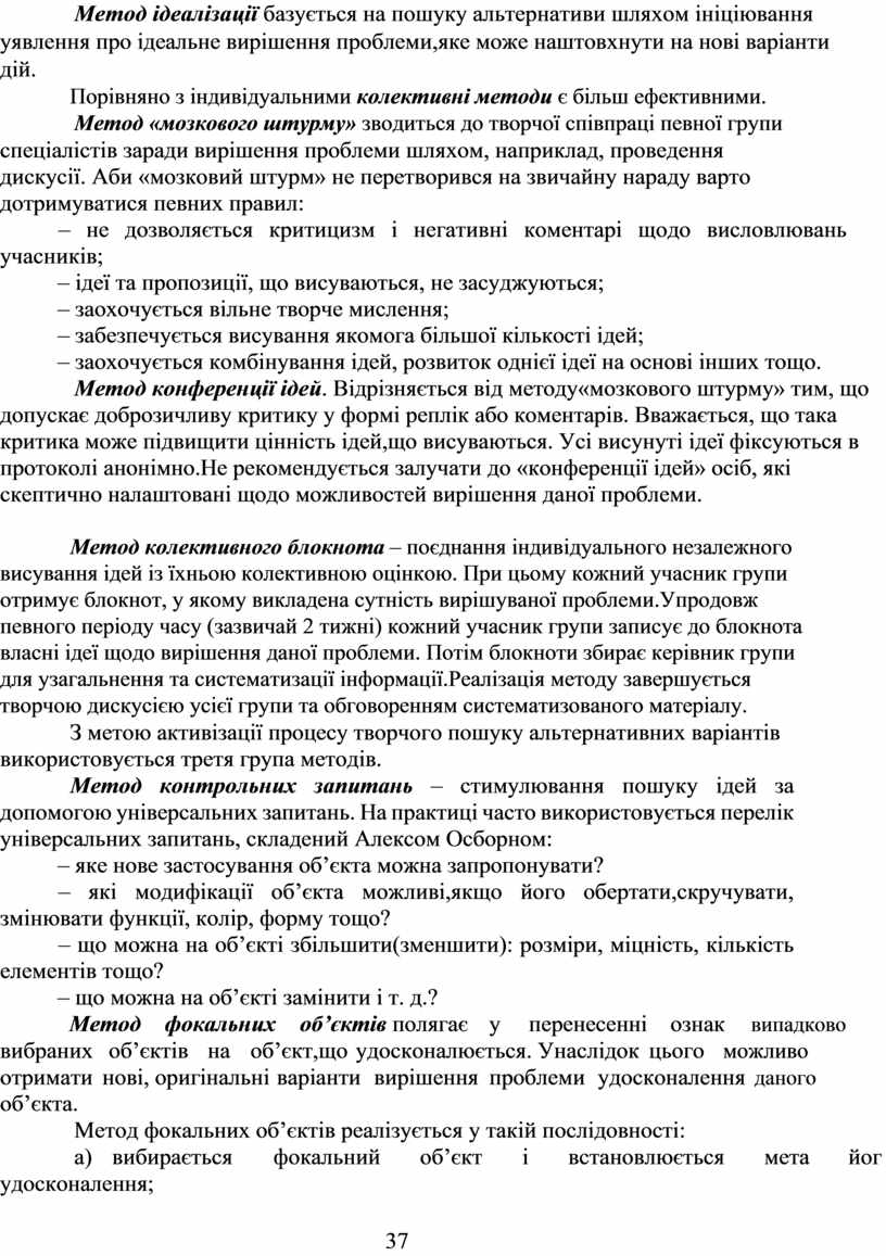 – методи активізації творчого пошуку(метод контрольних запитань, метод фокальних об’єктів, метод морфологічного аналізу).