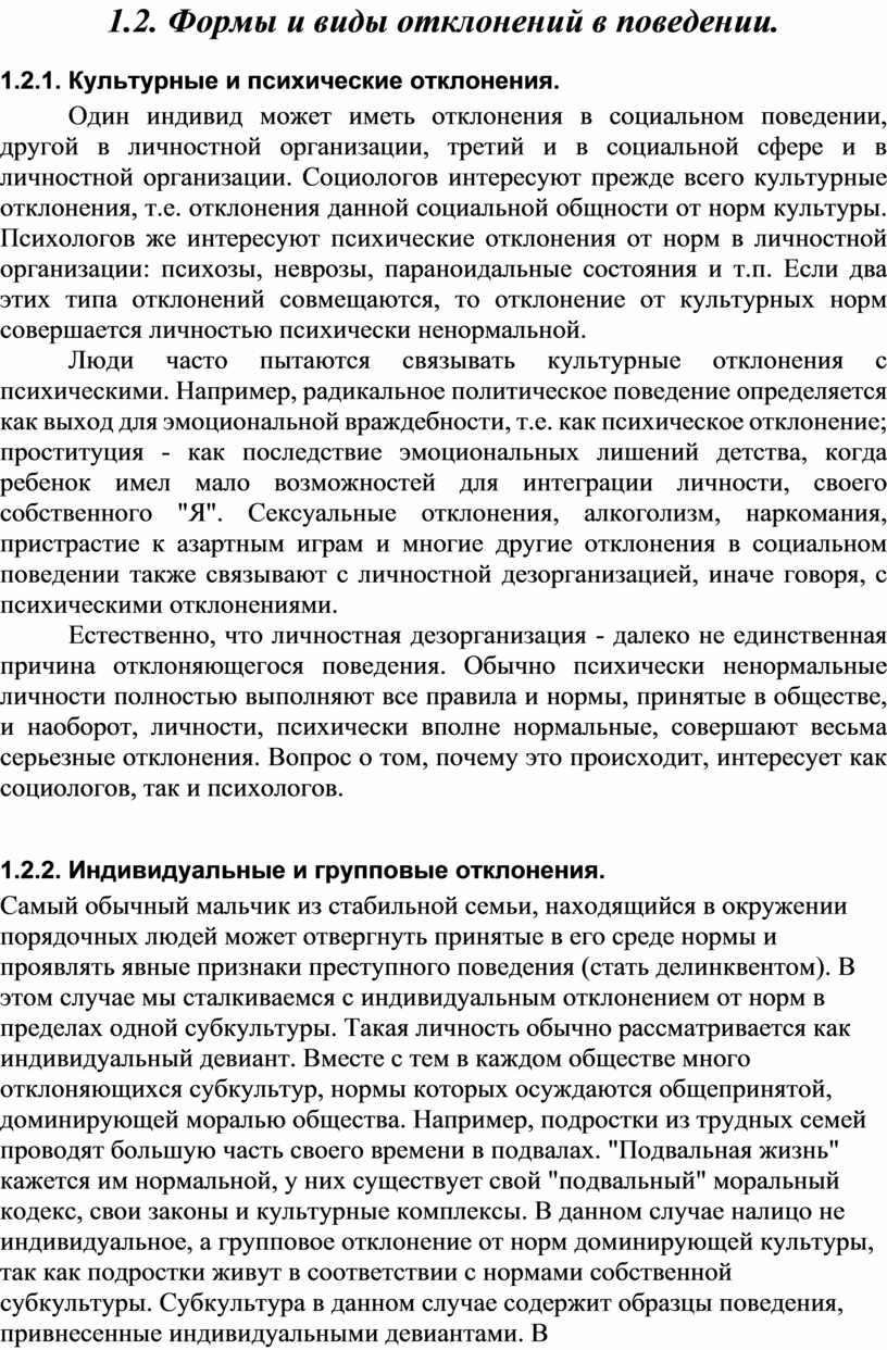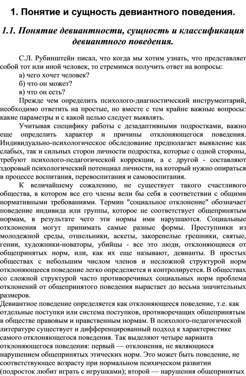 1.1. Понятие девиантности, сущность и классификация девиантного поведения.