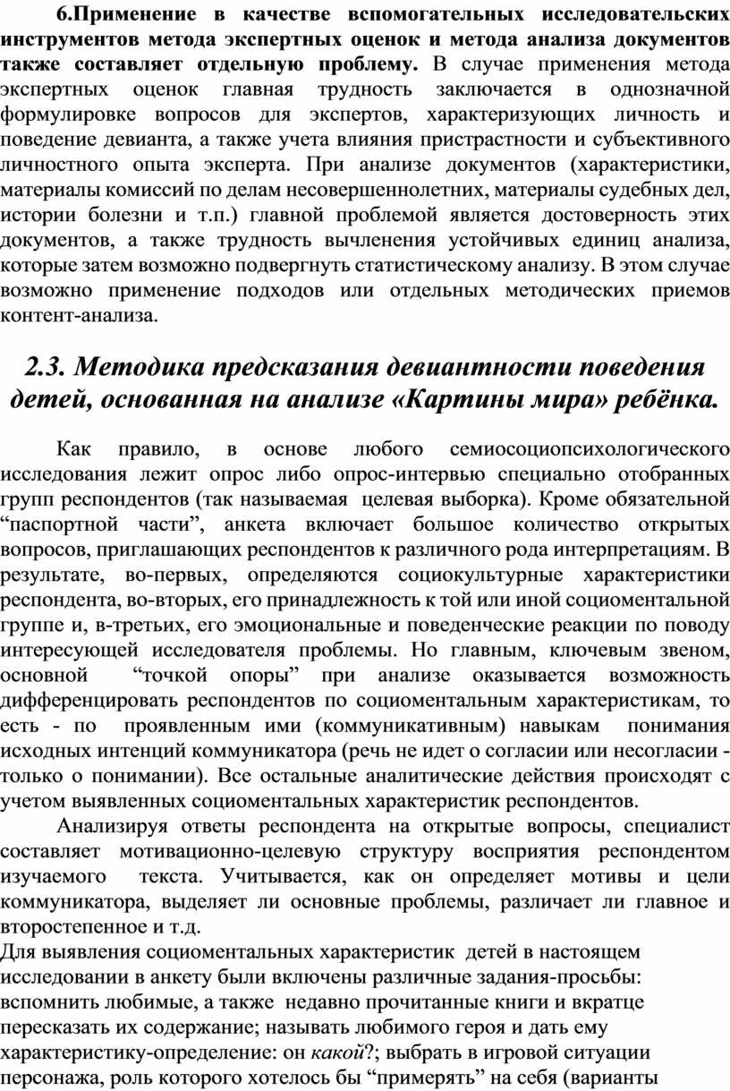 2.3. Методика предсказания девиантности поведения детей, основанная на анализе «Картины мира» ребёнка.