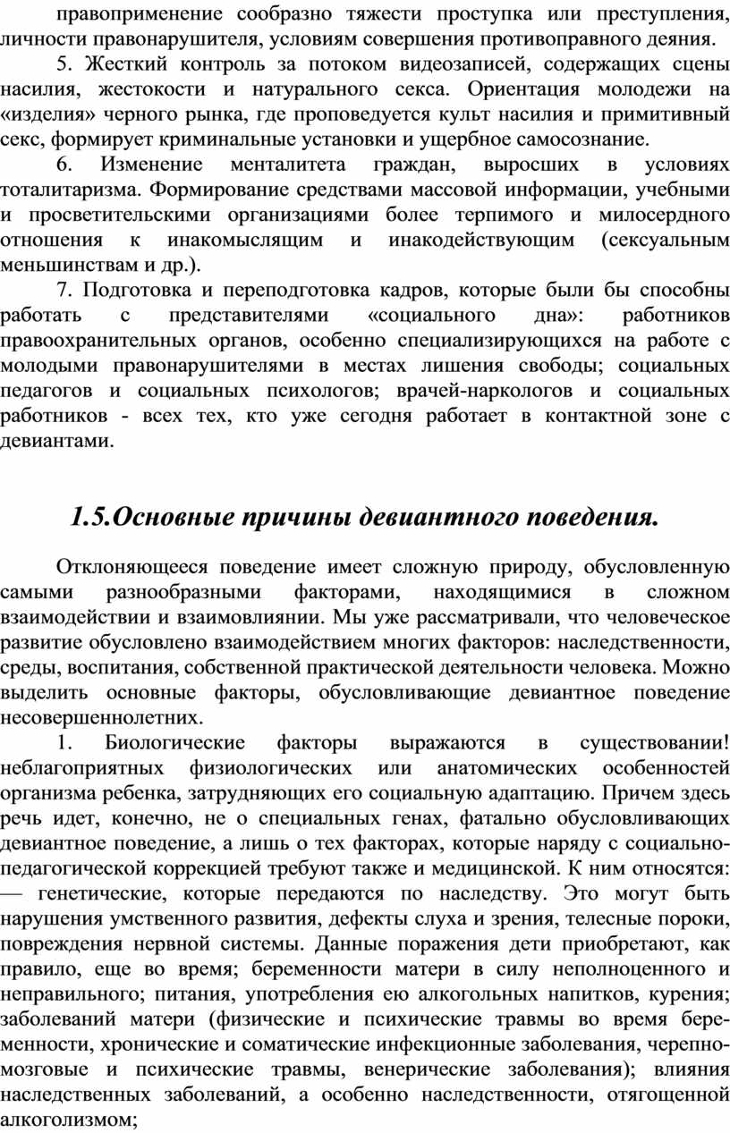 Трудность решения поставленных вопросов связана с тем, что многие годы замалчивания проблем, связанных с девиантным поведением молодых людей, привели к тому, что в нашем обществе педагогами совместно с другими специалистами проводилась не воспитательно-профилактическая работа, а предпринимались главным образом предупредительно-карательные меры, в результате которых наказание, «урок», который молодой человек получал за тот или иной проступок, не только не нейтрализовало накопления девиантного потенциала, но, наоборот, увеличивало вероятность отклоняющихся форм поведения.
