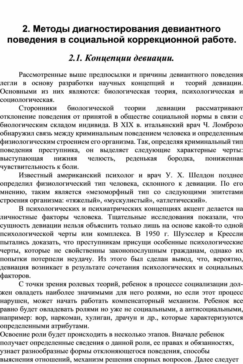 2. Методы диагностирования девиантного поведения в социальной коррекционной работе.