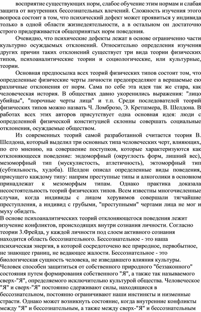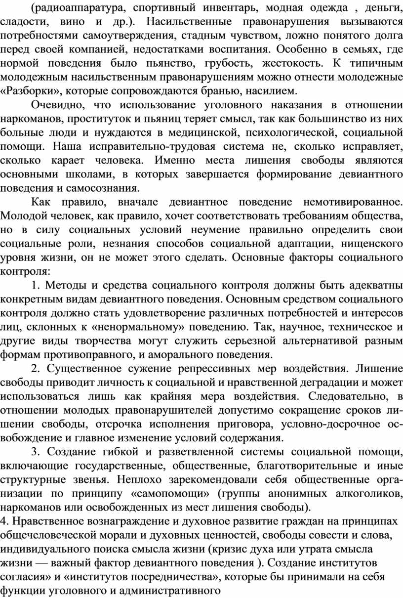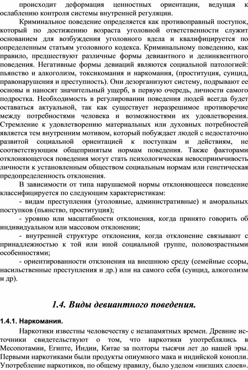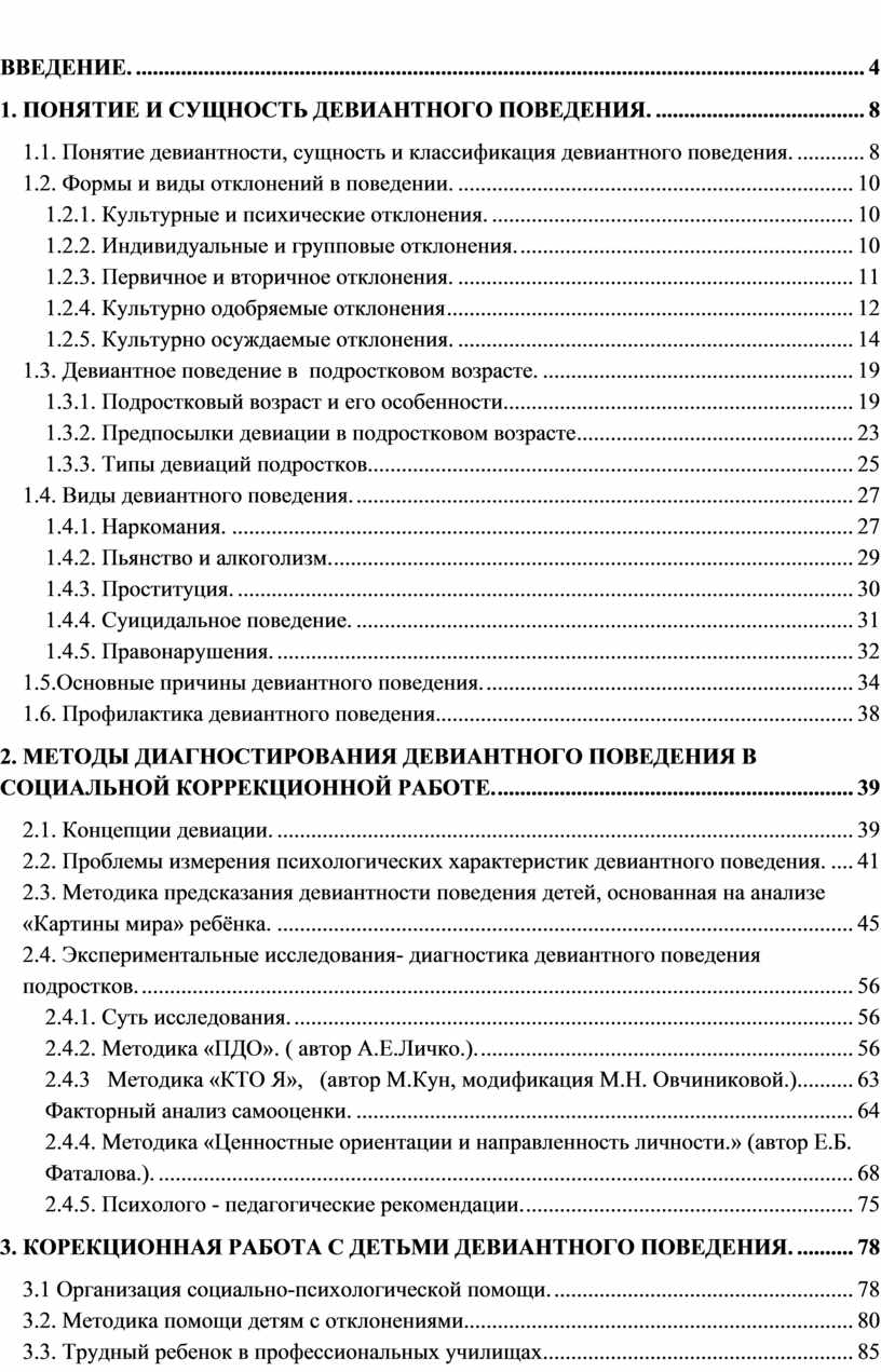 Работа состоит из трёх глав. В первой главе рассматриваются вопросы, связанные с понятийным аппаратом, видами девиантного поведения.