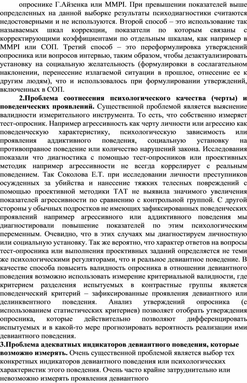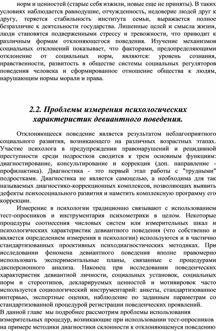 2.2. Проблемы измерения психологических характеристик девиантного поведения.