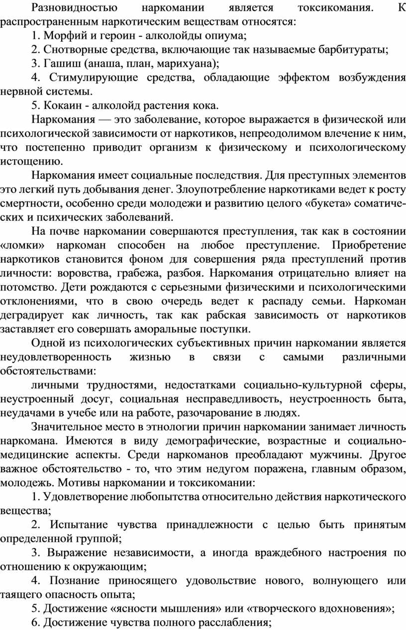Социальные отклонения столь же разнообразны, сколь сами социальные нормы. Более того, разнообразие отклонений превышает разнообразие норм, ибо норма типична, а отклонения могут быть весьма индивидуализированы. Аморальный поступок одного человека может быть совершенно не похож на поступок другого даже преступлению признаки, которых четко зафиксированы в уголовном кодексе, так же разнообразны, как и сами люди, их совершающие. Отклонения от социальных норм, несмотря на большое разнообразие, имеют некоторые общие причины, поддерживающие их существование, а подчас ведущие к их росту и распространенности. По своей сути они сводятся к объективным и субъективным противоречиям общественного развития которые нарушают взаимодействие личности с социальной средой и ведут к формам поведения индивидов не согласующимся с существующей нормативной системой. При том одно и то же противоречие «может лежать в основе как социально не желаемых форм поведения (преступность, алкоголизм, самоубийство и т. д.), так и социально одобряемых (познавательная активность, творчество, бытовая активность и т. д.). В период перехода к рыночной экономики изменилось материальное положение многих слоев населения. Большинство живет за чертой бедности, увеличилось количество безработных. Все это создает конфликтные ситуации, а они приводят к девиациям. Кто забывается в бутылке, кто забывается в наркотическом дурмане, а кто послабее сводит счеты с жизнью. Единственный способ как-то изменить сложившееся положение - улучшить жизнь, помочь людям преодолеть их проблемы для этого и создаются теперь социальные службы и другие организации. Но если их деятельность и будет поддерживаться государством рост преступности, наркомании, алкоголизма и т. д. будет только расти.
